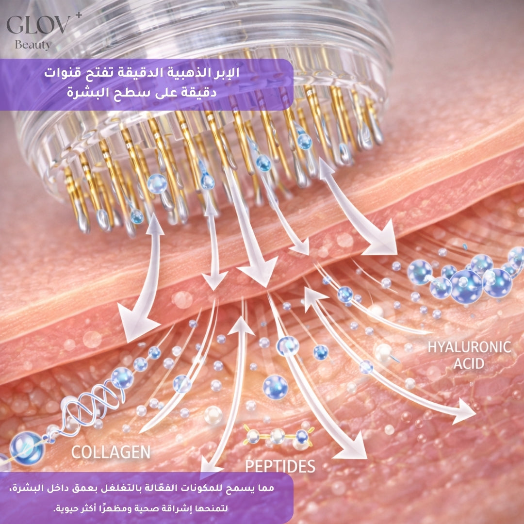 • إبر دقيقة جدًا (أقل من 0.5 مم) تفتح قنوات مجهرية داخل الجلد، بدون ألم .