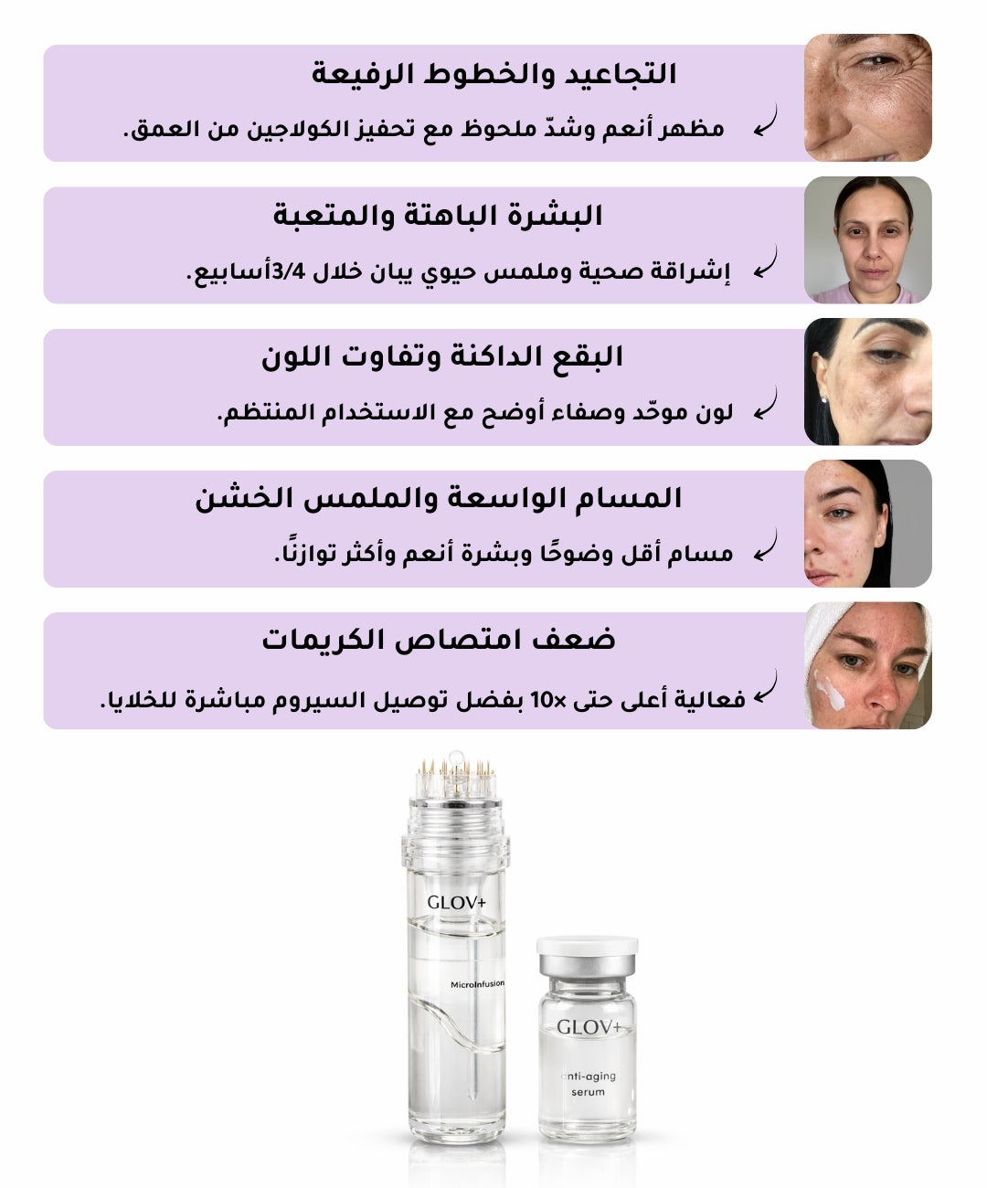 المشاكل التي يعالجها GLOV+ والنتيجة على بشرتك :